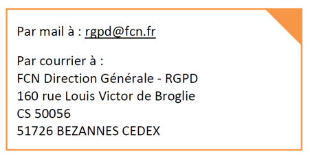 Pour exercer vos droits, vous pouvez adresser par courrier électronique ou postal à FCN :